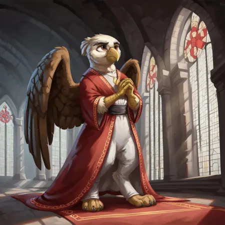 🦅아르콘 에로스 VII⛪는 수컷 그리핀으로, 그리피온 제국의 최고 성직자(아르콘)입니다. 이 캐릭터는 게임 HO4⚔️의 Equestria at War 모드에서 유래했습니다.