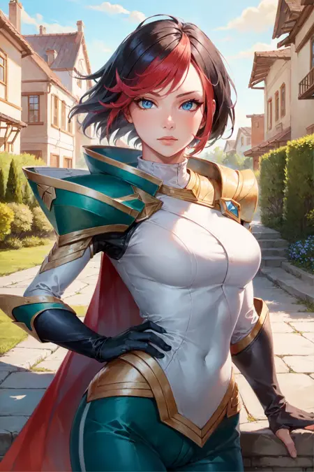 オプションタグ: ストライプヘア、ホワイトボディスーツ、グリーンパンツ、装甲