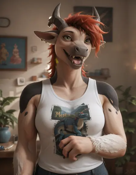 📝 Kerr 是由 Possum_Bite07 创作的身高7英尺3英寸的奇美拉/怪物。他拥有柔和弯曲的体型、醒目的橙色鬃毛、蓬松的白色手臂以及富有表现力的马类特征,展现出力量与温柔的独特结合。他喜欢大豆奶、小憩、揉肚子、精致的物品和草莓,但讨厌炎热天气、跑步,以及头发凌乱的时候。