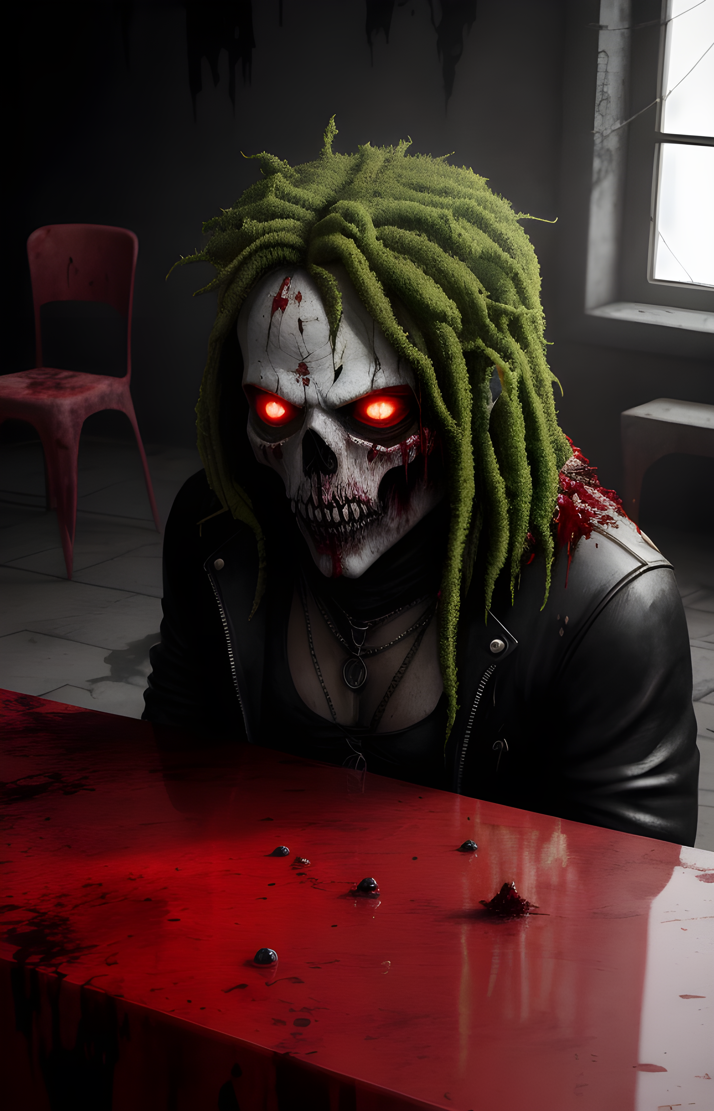 권장 프롬프트: 후기대 불과한 세계, 쥬르크룰루의 교단, 테이블 위에 외계인 머리가 딸린 흩어진 녹색 피를 흘리는 위험한 인물, 벗겨진 살, 과도한 잔인함, 부서진 생물, 죽은 자, 테이블 위에 외계인 머리가 딸린 흩어진 녹색 피를 흘리는 위험한 인물, 주변으로 많은 피, 거대한 사실감, 극도로 사실적인 색상 사진, 현실감 있는 사진 촬영 ((hnsrdlf 스타일)), 어두운 분위기, 고딕 예술, 현실적인 피, RTX 그래픽, HDR, 초세밀함, 극도로 현실적인 그림자, 초고품질
