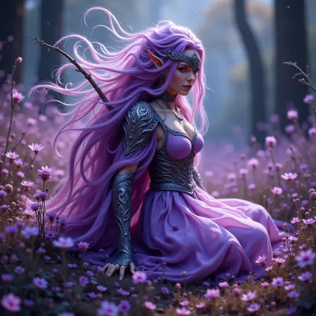 다음과 같은 프롬프트를 사용하면 도움이 됩니다: "자연, 꽃이 많은, 덩굴나무, 허브, 꽃이 피는 식물, 식물, 이끼 등..." "flrlizer"라는 키워드를 추가하는 것도 잘 작동합니다. LORA 강도는 프롬프트에 크게 의존하며, 일반적으로 0.65가 좋은 시작점입니다.