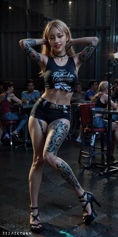 实用提示词: lora:badbroIrezumi:0.8, tattoo, Irezumi, (full body:1.5), (wide shot:1.3), (depth in field:1.3), (simple white background:1.3)