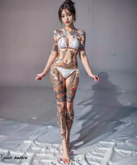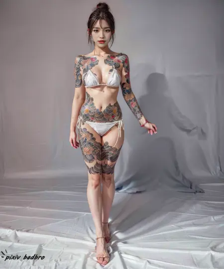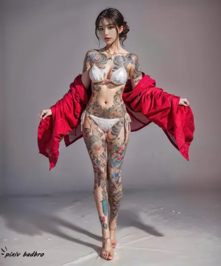 usefull prompt: lora:badbroIrezumi:0.8, tattoo, Irezumi, (full body:1.5), (wide shot:1.3), (depth in field:1.3), (simple white background:1.3)