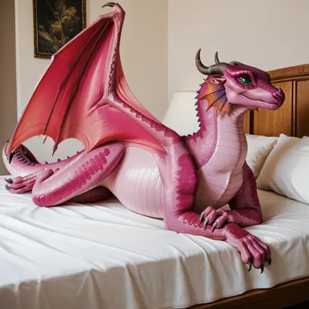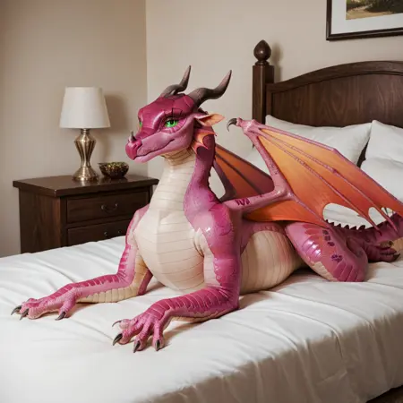 附加提示词:dragon, ear ruffs, head fins, scales, horn, claws, wings, tail