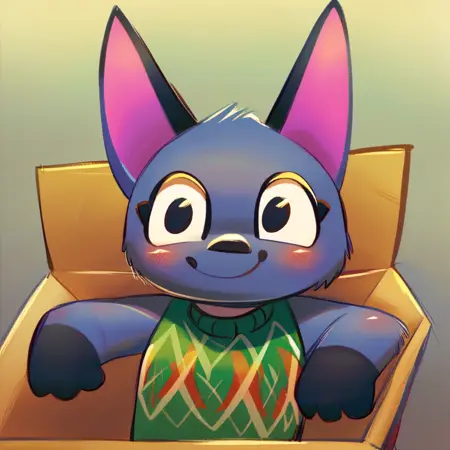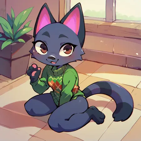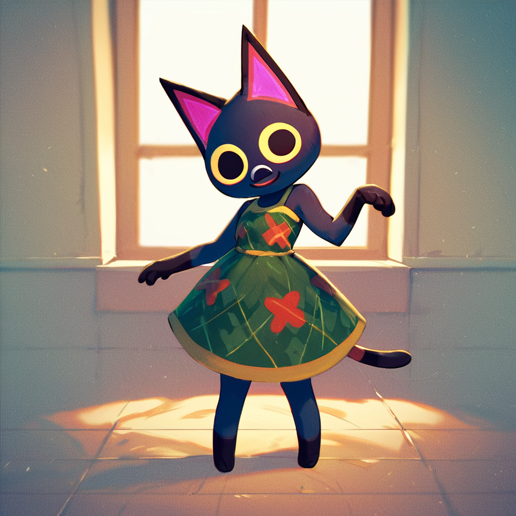 アニマルクロッシングのキキ!彼女のクラシックな服装に似せたい場合は、アーガイル模様の服、アーガイルセーター、またはアーガイルベストなどを使用してください。ただし、彼女はほとんどの場合下着を着ていないので、安全な画像を希望する場合は、プロンプトに「featureless crotch」などのタグを追加してください。