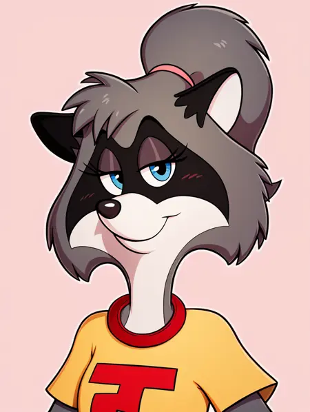 lisa racoon,grey fur,blue eyes,racoon tail,
