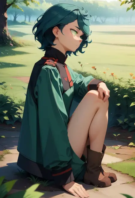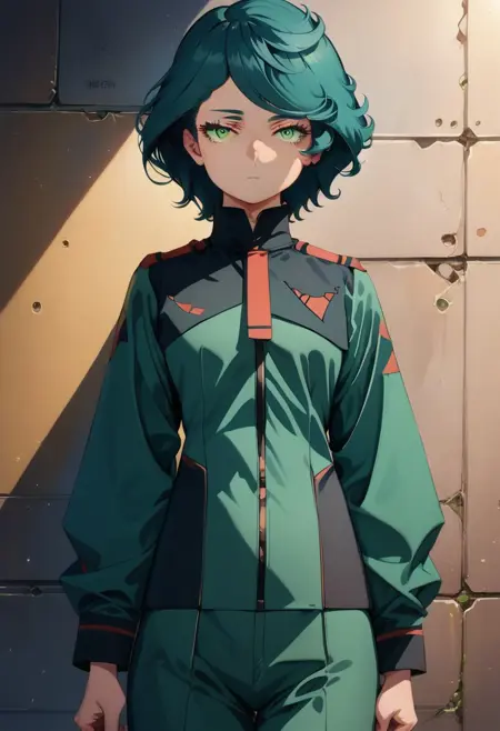 1girl, norea, green eyes, Asticassia uniform, green jacket