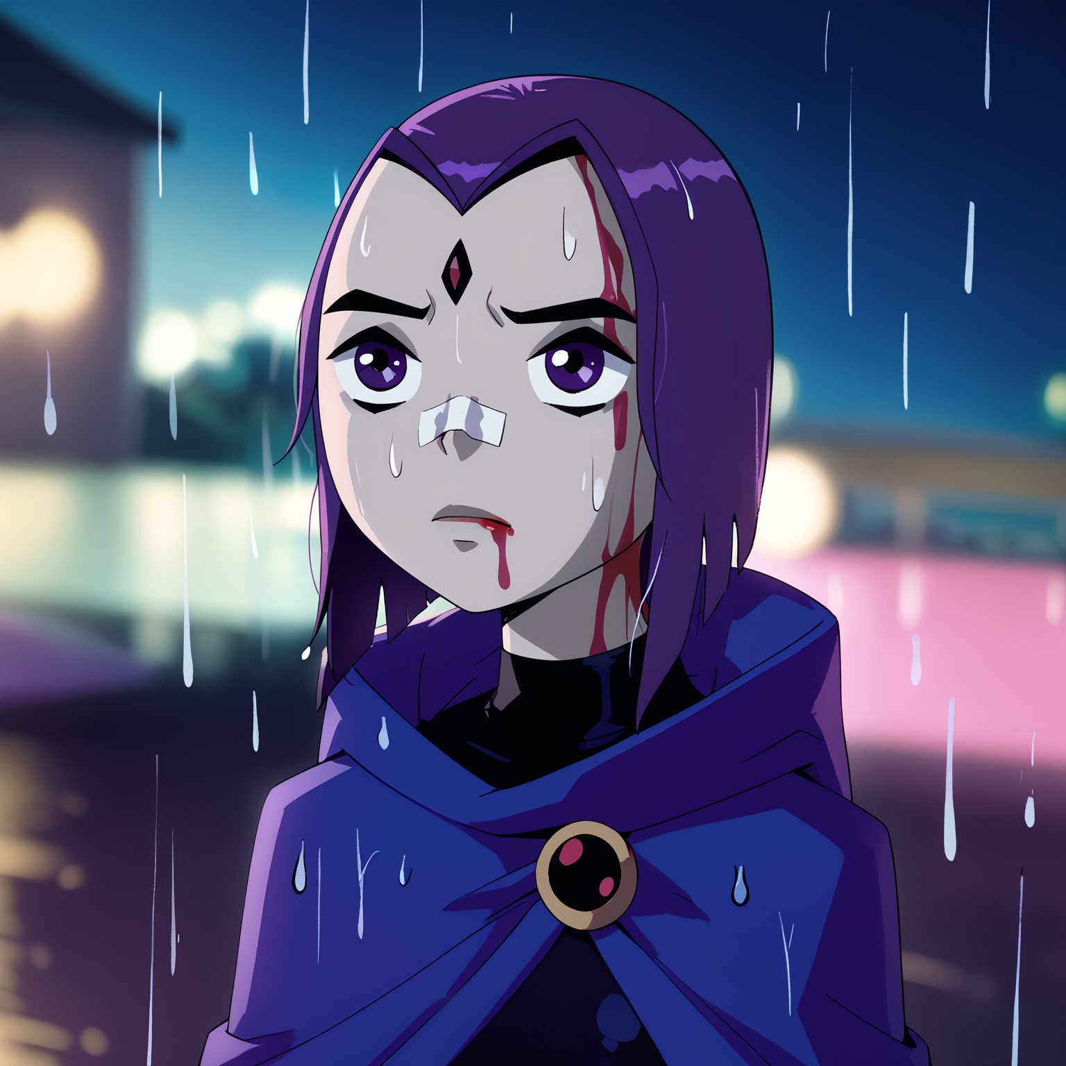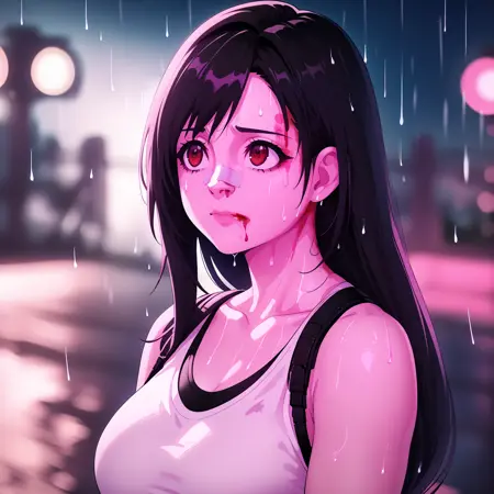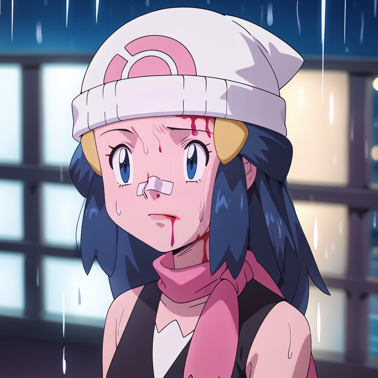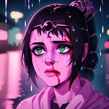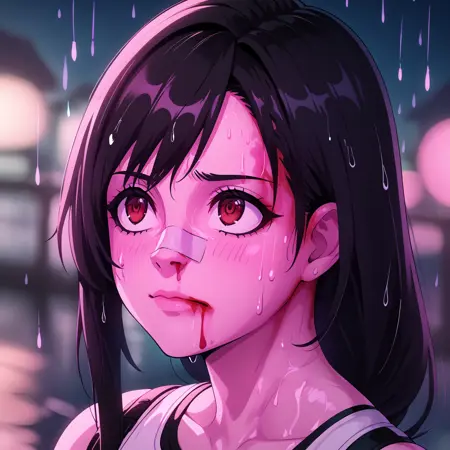 基本プロンプト:portrait, bandaid on nose, blurry background, pink lighting, night, dark, pink theme
