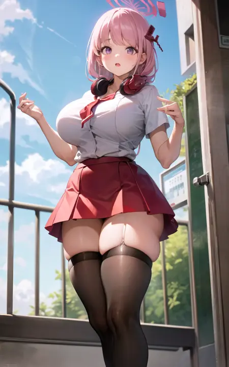 Most of the images will have the headphones around her neck, you can mitigate this adding headphones, headphones around neck in the Negative Prompts