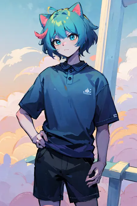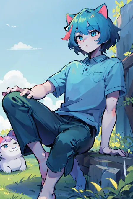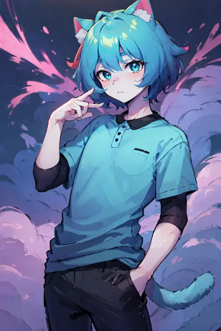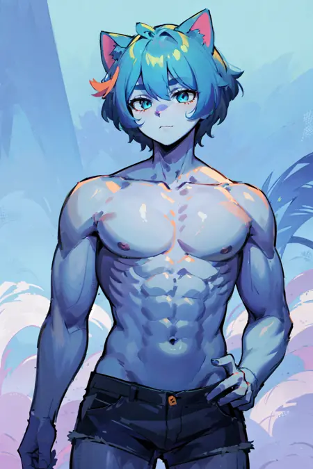 v0.1: 태그: 시마, 파란색 피부, 고양이 귀