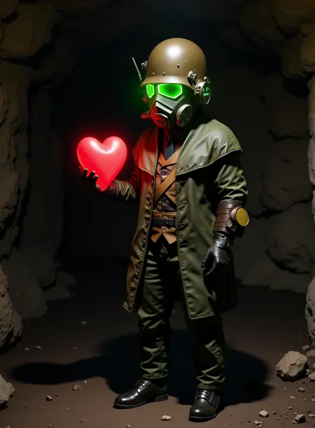 d3s3rtr4flux, helmet, gas mask, gloves, coat,