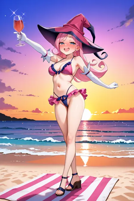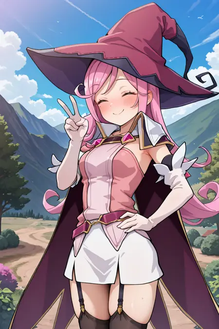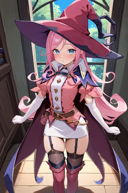 役立つタグ: 1girl, ピンクの髪, 長い髪, 青い目, 女王帽, 白いスカート, 女王の衣装, 白い肘までの手袋, テーラー, 黒いゼッタイリョウイキ, チャイナストッキング, ガーターストラップ, ブーツ,