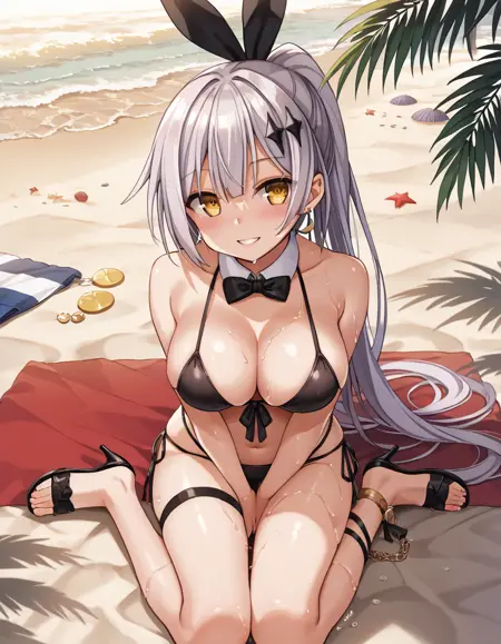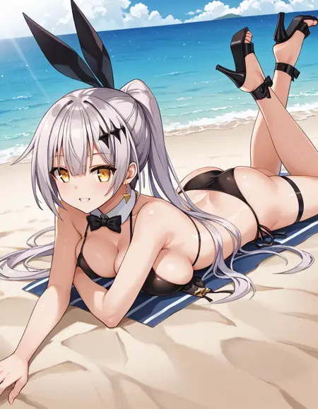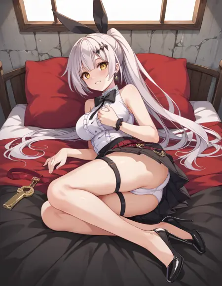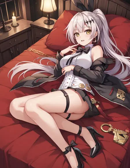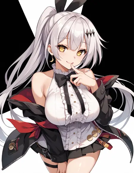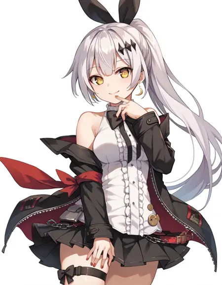 five seven, 长发, 白发, 马尾, 黄眼睛, 57发带, 57发饰, 57月牙耳环