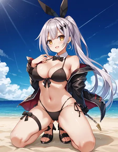 - 如果你想生成她不穿夹克的默认服装,只需移除夹克特征,并在提示中添加无袖;反之亦然。