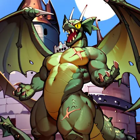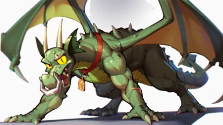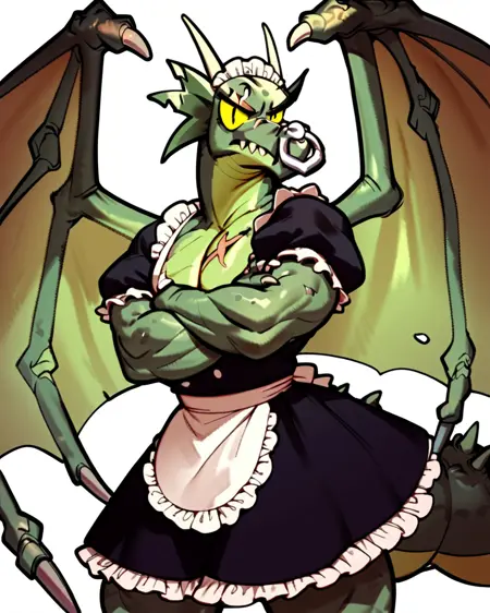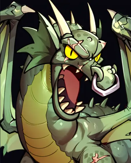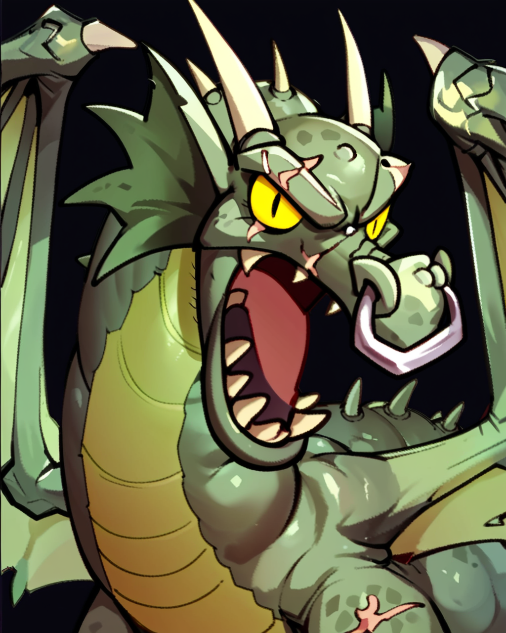 推奨ポジティブプロンプト:ダークグリーンの肌、黄色い白目、縦に細長い瞳孔、傷跡、鼻輪