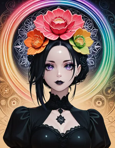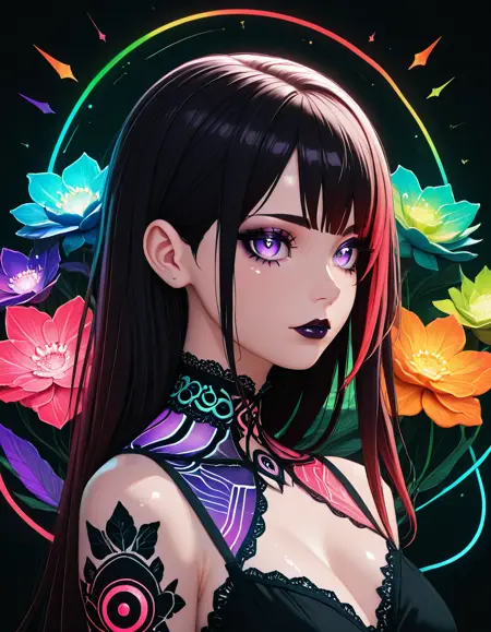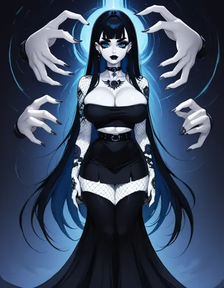 你可以混合多种风格(哥特、情绪化、朋克、另类、场景),并将它们作为关键词使用,但描述越具体,效果越好。例如,不要只用“裙子”,而可以使用“哥特裙”或“朋克裙”,以及“彩色情绪风头发”或“柔色哥特风头发”。