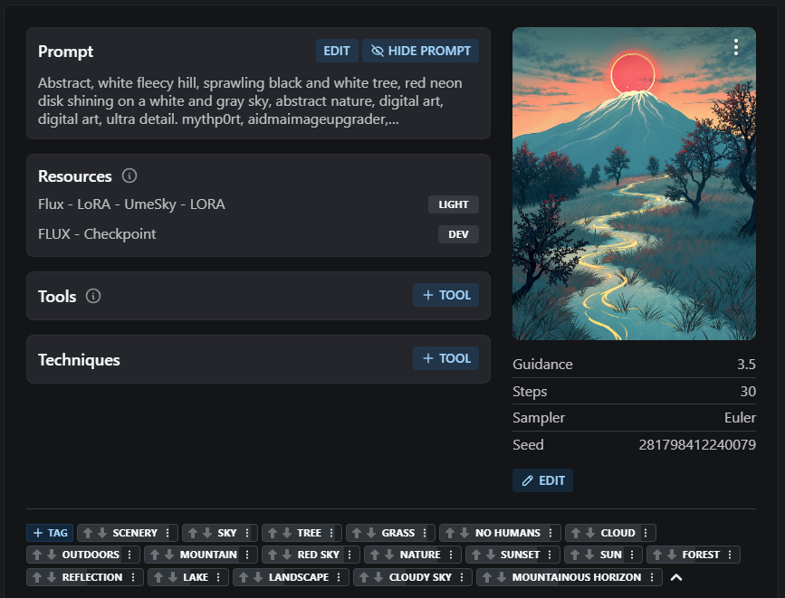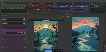 이 워크플로우는 기존 이미지에서 영감을 받아 텍스트에서 이미지를 생성할 수 있도록 해줍니다. 온라인 게시를 간소화하기 위해 모든 메타데이터를 통합하도록 최적화되었습니다.
