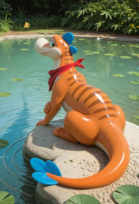 // Illustrious: pless1e_sup3r_mar1o, solo, scalie, no humans, hi res, green eyes, tail, male, red neckerchief, looking at viewer, round nose