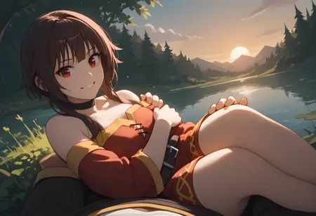 Then, include your character trigger words (example): megumin, embarrased smile,