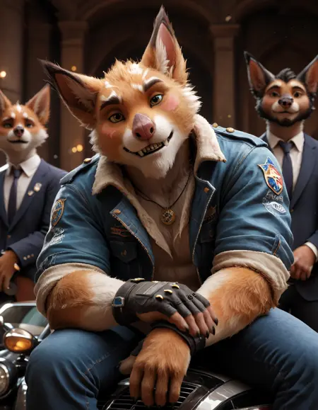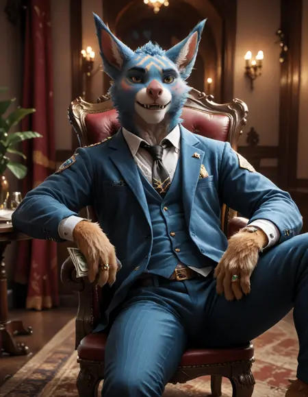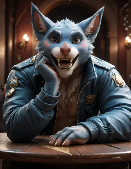 // Illustrious: kubrow, alien, mammal, solo, no humans, anthro, furry, male focus, 1boy, pointy nose, looking at viewer, furry male, colored fur, tail, claws