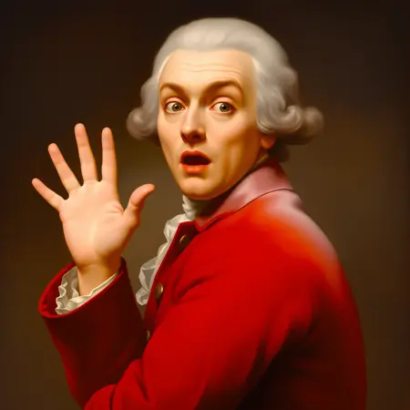 wearing white wig with red jacket