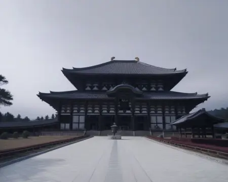 동대사(東大寺)로 알려진 이 위대한 사원은 고대 수도 나라에 위치해 있으며, 야마토 땅 전역에 부처의 가르침을 확산하기 위해 성스러운 장소로 설립되었다. 이 사원의 주불은 비로자나불이며, 화엄경의 가르침을 바탕으로 황실의 칙령에 의해 건립되어 국가의 평화와 백성의 안녕을 기원하였다.