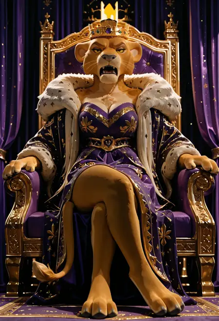 kingC、ライオン、男性、薄茶色の毛皮、茶色のたてがみ、たてがみ、黒い目、黄色い白目、老年、ひげ、口ひげ、尾、
