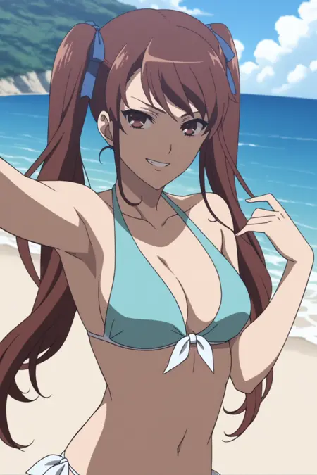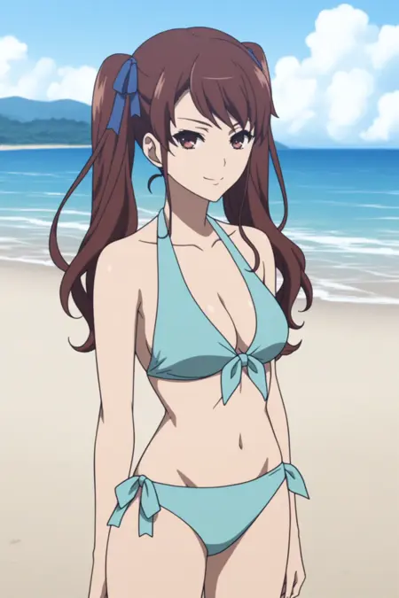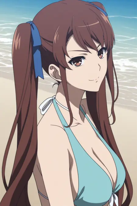 akazawa izumi, 棕色头发, 长发, 双马尾, 蓝色发带, 棕色眼睛, akazawaswim, 泳装, 蓝色比基尼