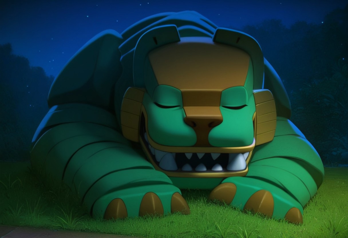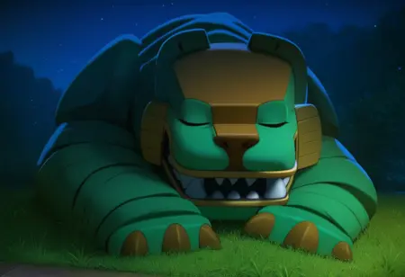 긍정적 프롬프트: StoneJaguar, 재규어, 야수적인, 돌 생물, 이빨, 송곳니, 녹색 몸체, 돌 몸체, 돌 피부, 녹색 눈, 동공 없음, 발톱