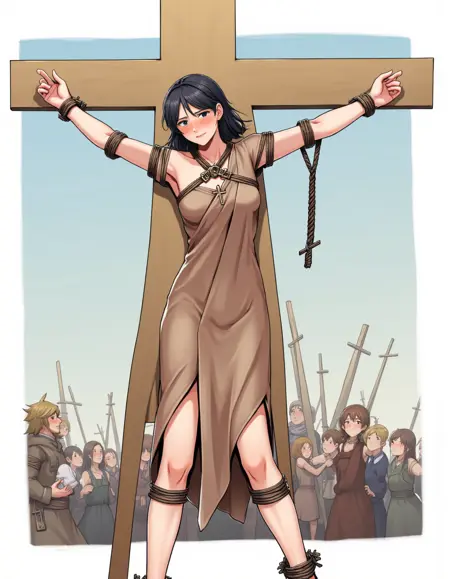 Attempting to update some of my LoRA's to Flux. This is based on the same dataset as my Pony Crucifixion LoRA.
