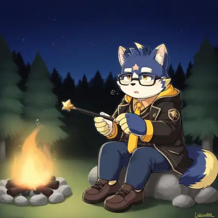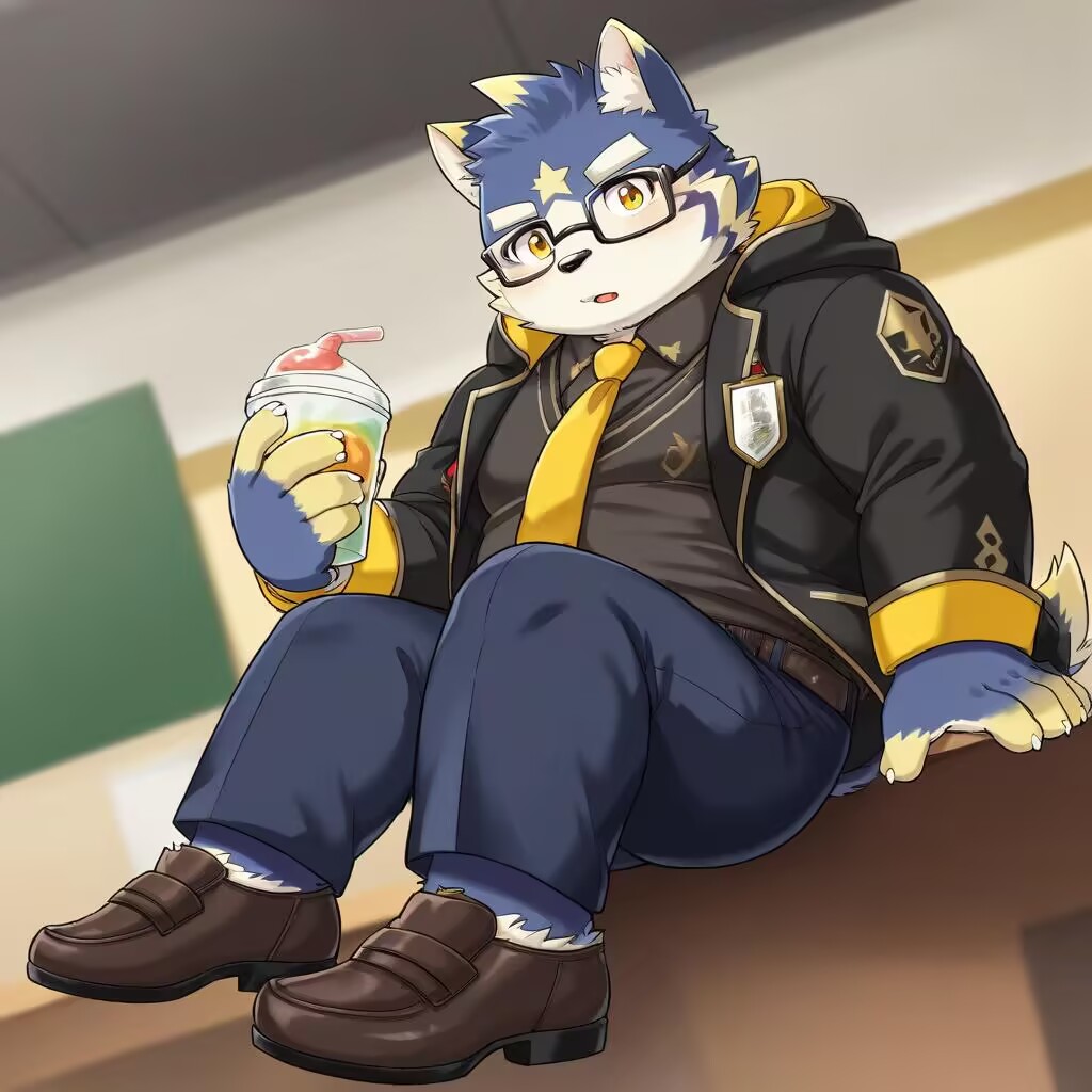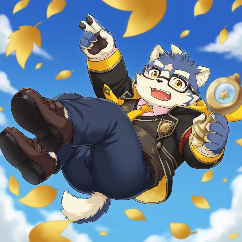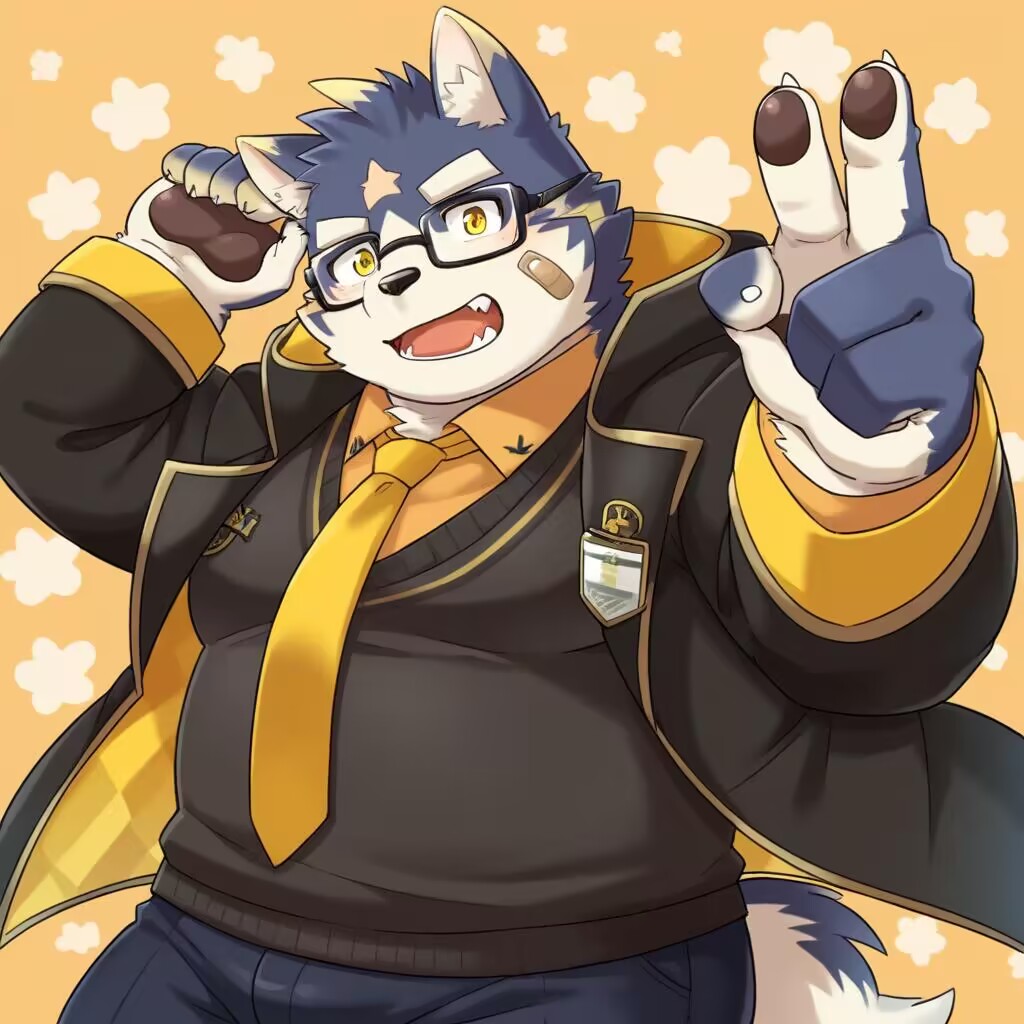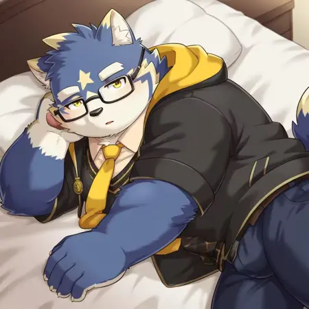 다음과 같은 키워드로 시작하는 것이 권장됩니다: "male focus, 1boy, necktie, solo, furry male, furry, yellow necktie, bara, looking at viewer, glasses, shoes, pants".