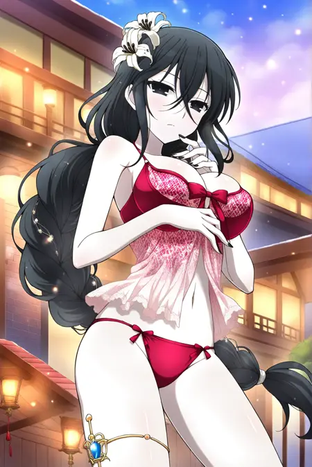 참고: 개인적으로 그녀의 피부색은 공식 아트워크에서도 상당히 일관되지 않은 편이라고 생각합니다. 때로는 매우 창백한 하얀 피부로, 때로는 보통의 피부색으로 묘사됩니다. "colored skin", "white skin", "pale skin" 태그를 가중치를 높여(최대 1.4) 보조로 사용할 수 있습니다. 특히 그녀의 쿠노이치 복장에서 가장 잘 작동하는 것을 확인했습니다(해당 복장 데이터셋의 이미지 대부분이 창백한 피부로 되어 있었기 때문입니다). 훈련 전에 다른 복장에 대한 데이터셋 이미지를 수정할 수도 있었지만, 저는 공식 아트워크와 게임 내 CGI에서 그대로 가져와 사용했습니다. 만약 이점이 문제라면, 사용자가 피부색 태그의 가중치를 높여서 조정할 수 있습니다.