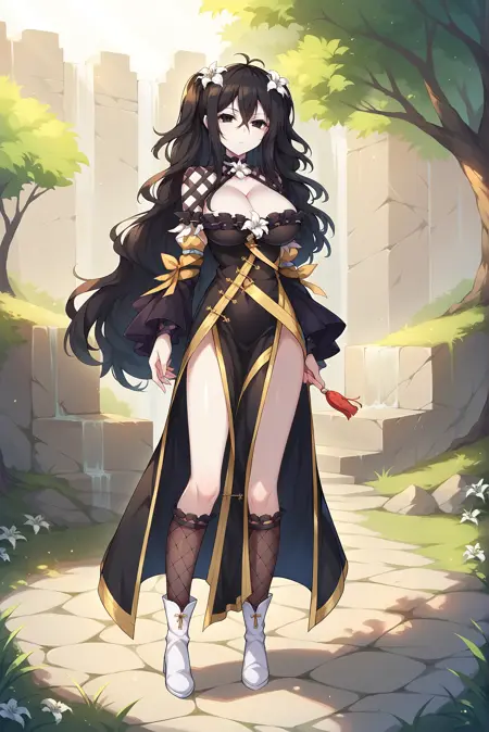 Note: Personally I would say her skin tone seems to be quite inconsistent even in her official artworks, she is sometimes depicted with either pale white or a more normal skin tone. You can still use "colored skin", "white skin" and "pale skin" tags as helpers with increased weight (1.4 at most), I noticed it works best in her kunoichi outfit (because the pictures for that outfit dataset mostly had her in with pale skin). I could have just edited the pictures in the dataset for her other outfits before training but I rather used them as is directly from oficial artworks and in-game CGI, if it's an issue for you, it can be fixed by user preference by increasing skin color tag weights.
