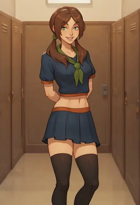 服装 - 学校制服、スカート、スカーフ、太ももハイ、腹部露出