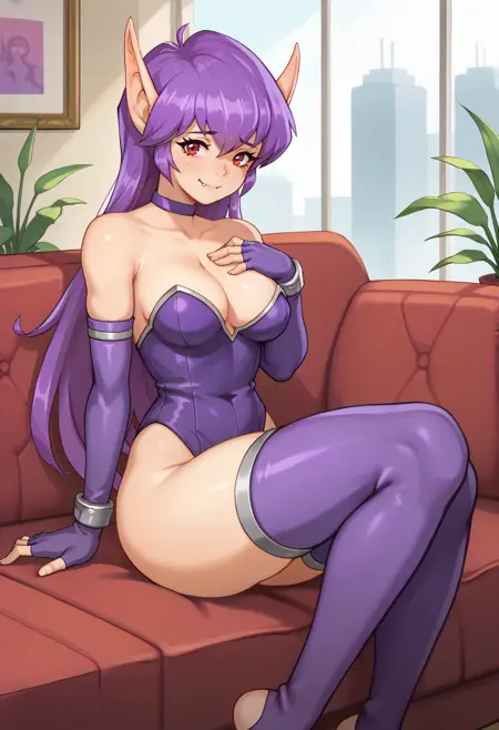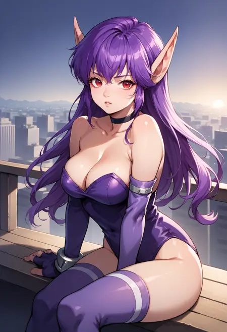 맞춤 의상: neiPS, 긴 머리, 보라색 머리, 붉은 눈, 뾰족한 귀
