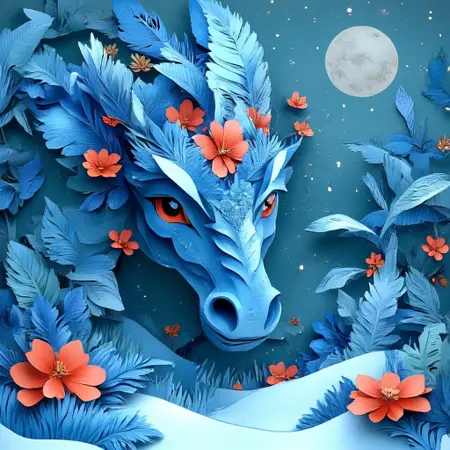 此LoRa将生成剪纸风格。图像以复杂的层次和深度为特征,营造出三维插画的视觉效果。主要主题为自然与风景,常以日落或沐浴在温暖金色光线中的场景呈现。作品通常包含超现实与幻想元素,通过大胆的色彩和风格化的形态加以突出。