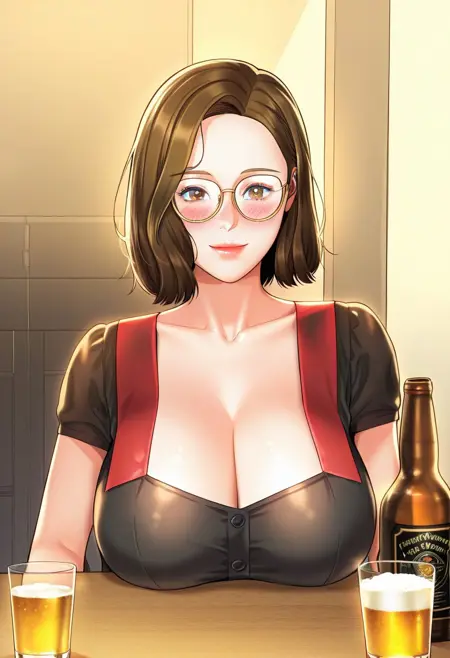 (( lora:do_jeong-hwa:1 , do_jeong-hwa, 纤细腰身,宽臀,完美肌肤,迷人棕褐色眼睛,清澈双眼,明亮瞳孔,美丽双眼,秀美棕发,短发,巨大蓬松胸部,自然美,超凡美女,迷人女性,超级性感女性,欲望躯体,性感且诱人露骨身材,性感体态,丰腴身体,性感美人,无穿孔,无耳洞,眼镜,金色镜框)),