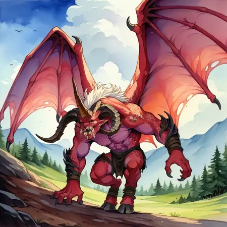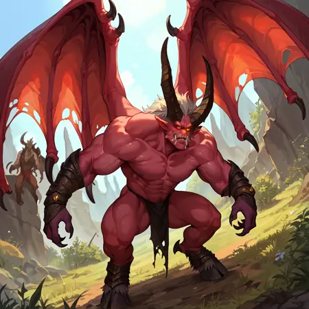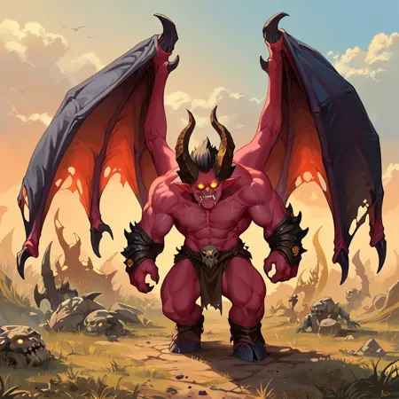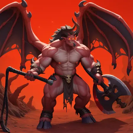 ExaltedBT, monster, demon, horns, wings, glowing eyes, muscular,