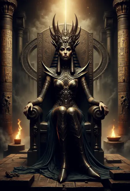 "이집트 다크 판타지"는 검과 마법, 고대 이집트의 신비로움을 융합한 어두운 판타지 매력을 자랑합니다. 이 이야기는 어둠에 뒤덮인 우아함과 고대의 속삭임이 은밀히 울려 퍼지는 정교한 흔적을 통해 알려지지 않은 힘을 드러냅니다.