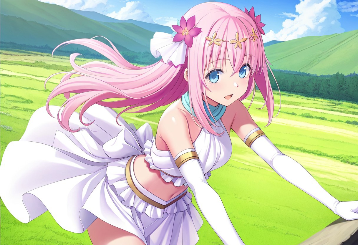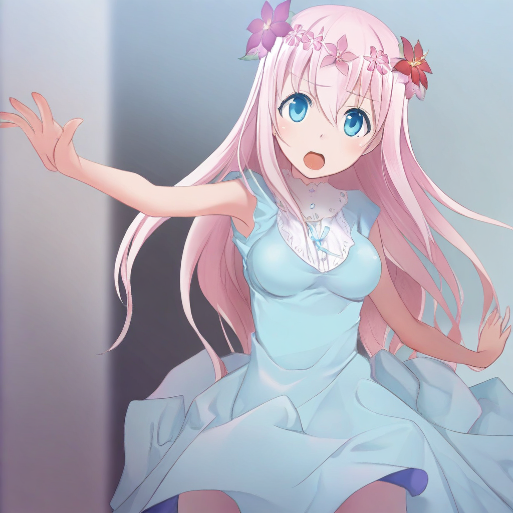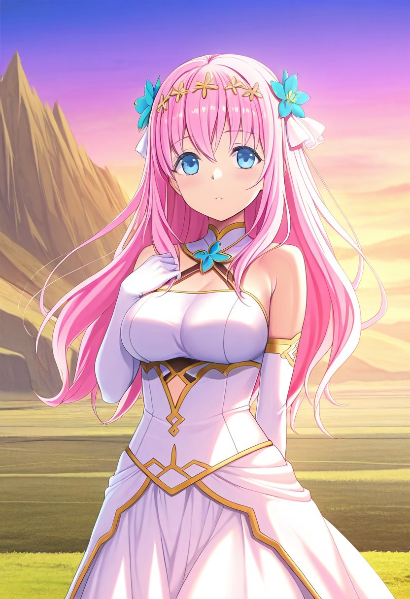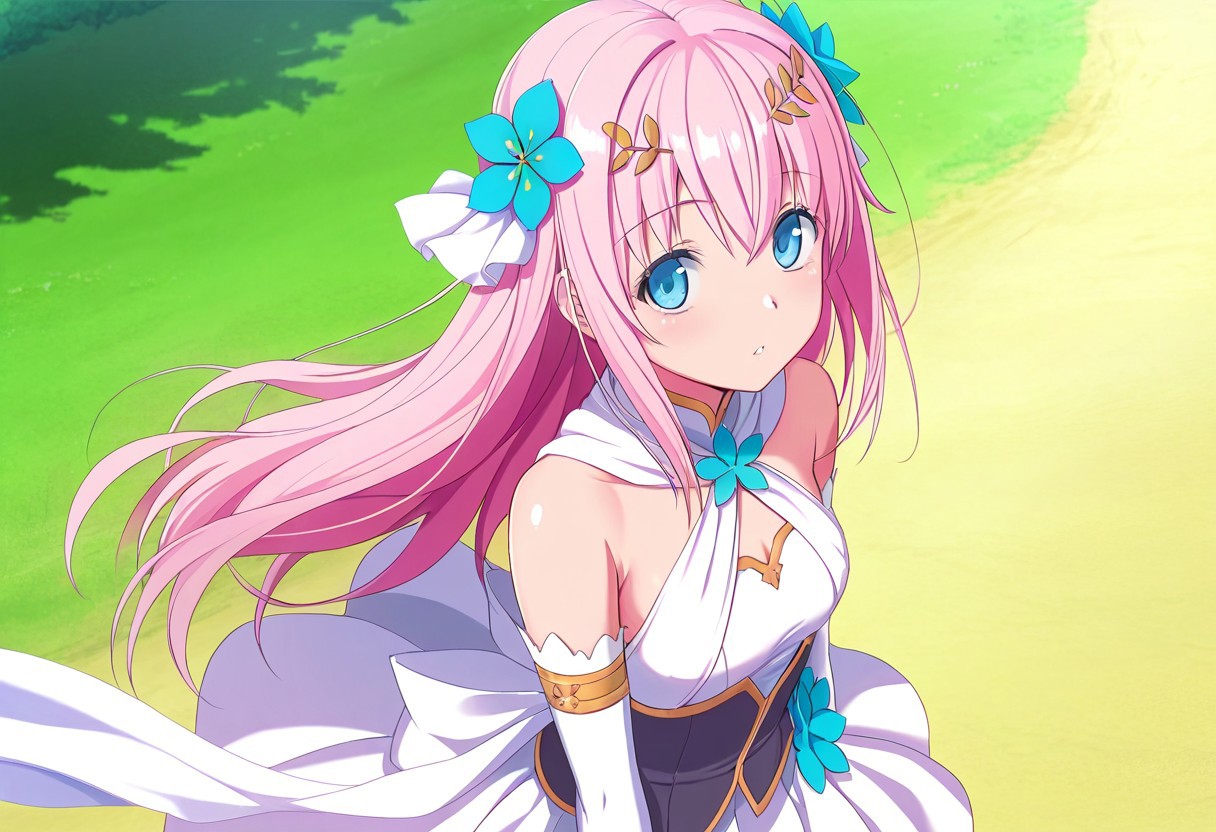触发词:purete_Otogi_Frontier,粉发,发饰花,蓝眼