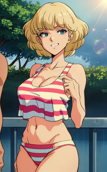 1girl, blonde hair, freckles, short hair, eyeshadow, makeup, bangs, breasts,