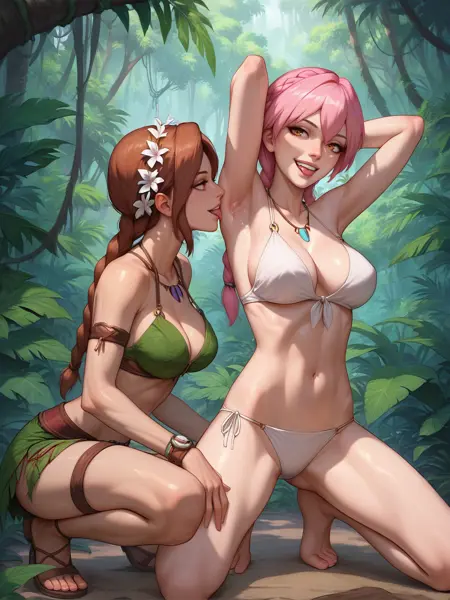 유용한 프롬프트: 핥기, 팔을 머리 뒤로, 손을 머리 뒤로