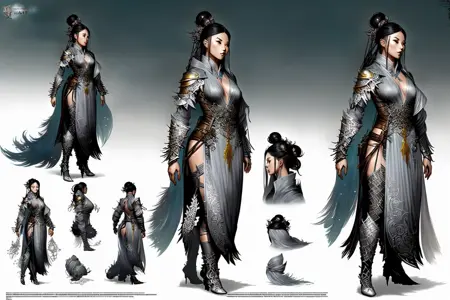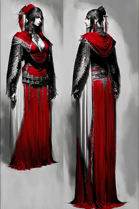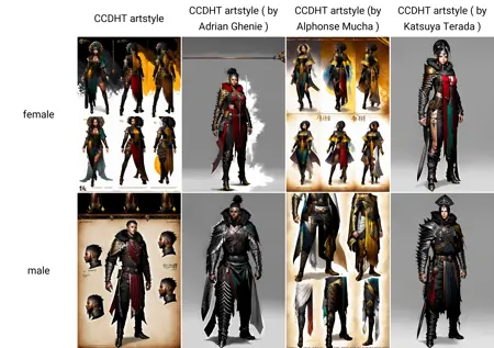 Most of the trained images contains tattoos, jewelry, stamps, and detailed equipment of scifi fantasy fashion;