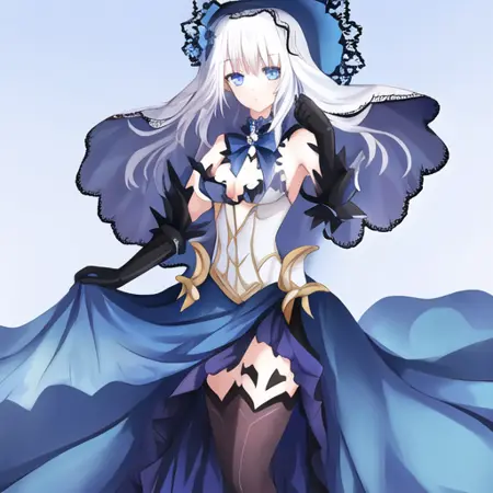 lora:origami:1, 1girl, 흰 머리카락, 파란 눈, 서 있는 자세, 파란 드레스, 검은 장갑