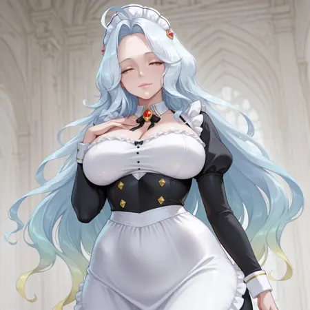 트리거 단어: 루크레티아, 긴 머리, 파란 머리, 하얀 머리, 금발 머리, 그라데이션 머리, 파문 머리, 노란 눈, 반쯤 감긴 눈, 입 아래 점, 아호게, 머리 장식, 털 테두리, 날개, 깃털, 가슴 돌출, 큰 가슴, 드레스, 어깨 노출, 결혼식 장갑, 보석, 넓은 엉덩이, 허벅지, 하이힐 부츠,