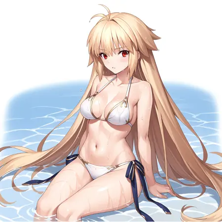 (arc_1:1.1), 金发, 红眼, 竖瞳, 胸部, 刘海, 长发, 极长发, 天线发, 发丝吸收,