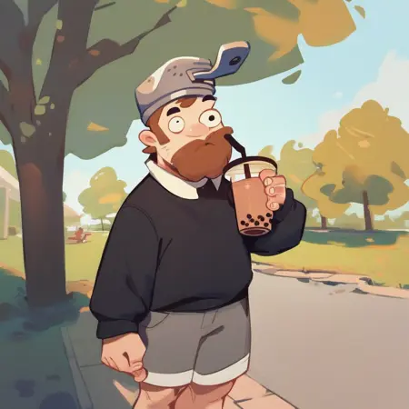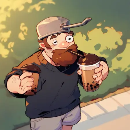 mikus-dave,brown hair,brown beard,frying pan on head,