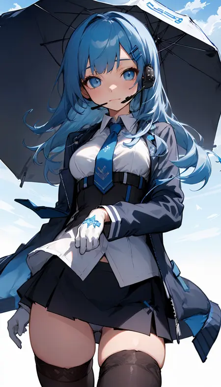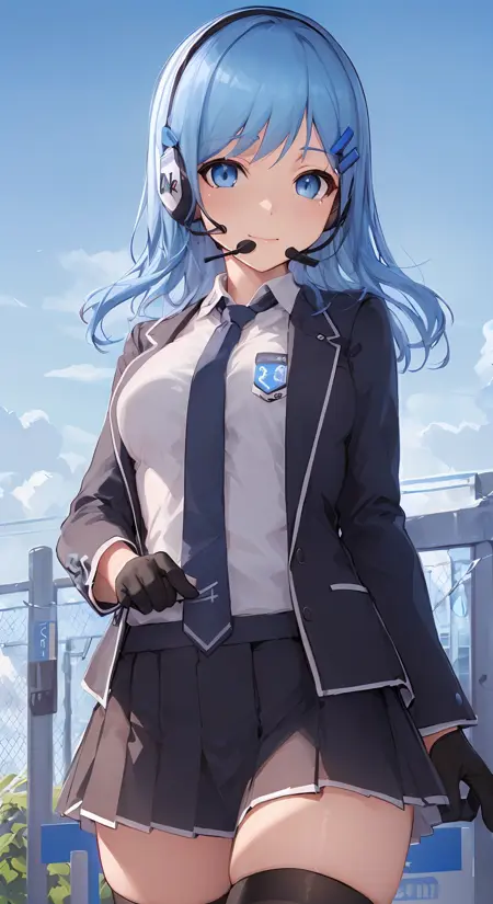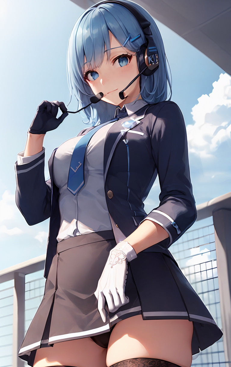 사용법을 모르겠다면 아래의 프롬프트를 그대로 복사해서 사용하면 훈련 데이터를 비교적 잘 재현할 수 있음: 1girl, solo, blue eyes, blue hair, long hair, hair ornament, gloves, necktie, looking at viewer, white gloves, hairclip, headset, personification, index finger raised, uniform, jacket, black necktie, shirt, long sleeves
