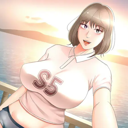 ((짧은 소매 흰색 칼라 티셔츠, 복부 노출, 세ク시한 파란 스포츠 반바지, 긴 흰색 양말, 흰색 트레이닝 신발, ))