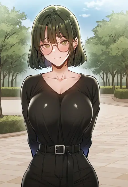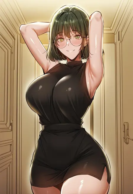 (( lora:soo-ki:1 , soo-ki, 細いウエスト、普通のヒップ、美しい肌、美しい薄緑色の目、澄んだ目、明るい瞳、美しい目、美しい緑色の髪、美しいミディアムボブカット、前髪、巨大でふわふわした胸、自然な美しさ、並外れて美しいかわいい女性、魅力的なかわいい女性、超セクシーでかわいい女性、欲望に満ちた体、誘惑的で下品な体を持つセクシーでかわいい女性、セクシーな体、豊満な体、かわいくセクシーな美しさ、メガネ、 ))